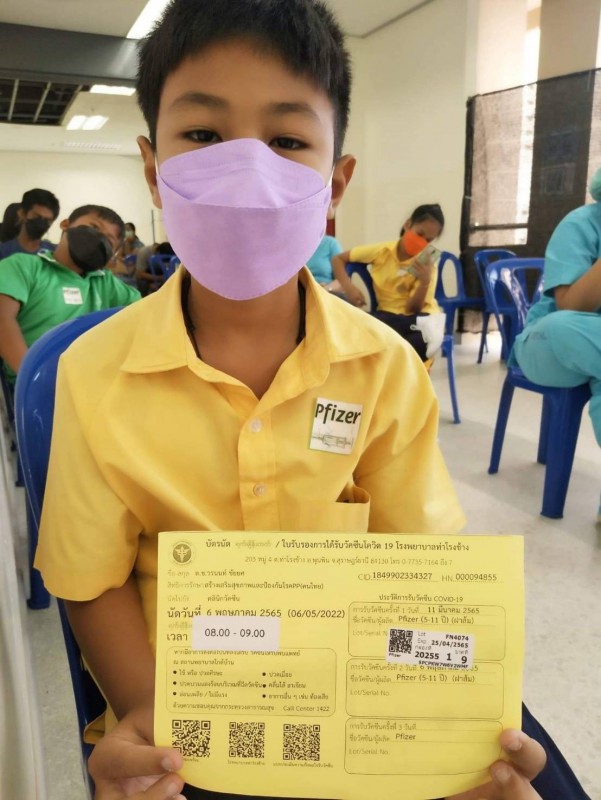 วันศุกร์ ที่ ๒๕ กุมภาพันธ์ ๒๕๖๕ เวลา ๐๙.๐๐ น. นักเรียนชั้นประถมศึกษาปีที่ ๕ โรงเรียนวัดประชาวงศาราม เข้ารับการฉีดวัคซีน Pfizer เข็มที่ ๑ เพื่อสร้างภูมิคุมกันให้ตนเอง ณ โรงพยาบาลท่าโรงช้าง อำเภอพุนพิน จังหวัดสุราษฎร์ธานีทางโรงเรียนวัดประชาวงศารามขอขอบพระคุณทีมบุคลากรทางการแพทย์ หน่วยงานต่างๆ และผู้มีส่วนเกี่ยวข้องทุกฝ่ายมา ณ โอกาสนี้