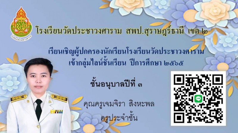 ประกาศแจ้งให้ผู้ปกครองนักเรียนเข้าร่วม Line กลุ่มห้องเรียน