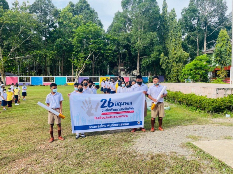 วันศุกร์ ที่ 24 เดือนมิถุนายน 2565 ทางโรงเรียนวัดประชาวงศารามพร้อมด้วยคณะครูนักเรียนได้จัดกิจกรรมขบวนต่อต้านยาเสพติดโลกประจำปี 2565 ขึ้นเพื่อเสริมสร้างภูมิคุ้มกันและป้องกันยาเสพติดในสถานศึกษาให้นักเรียน เกิดความตระหนักถึงโทษ และพิษภัยของยาเสพติด |