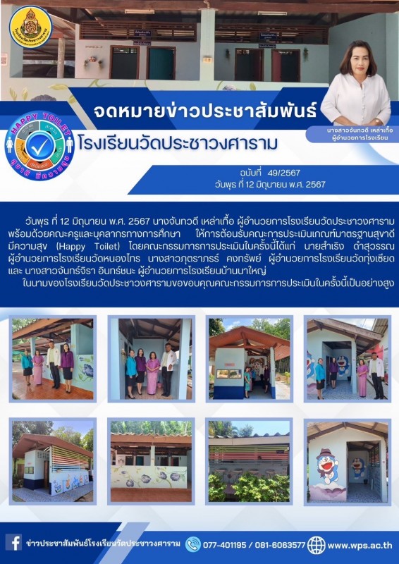 โรงเรียนวัดประชาวงศาราม ต้อนรับคณะกรรมการประเมินห้องน้ำตามเกณฑ์มาตรฐานโครงการสุขาดี มีความสุข จาก เครือข่ายสถานศึกษาขั้นพื้นฐานพุนพิน 2 (ตาปี)