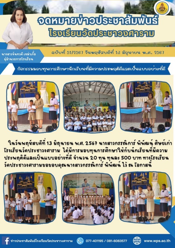 รับมอบทุนในวันไหว้ครู จากนางสาวกรรณิการ์ พิพัฒน์