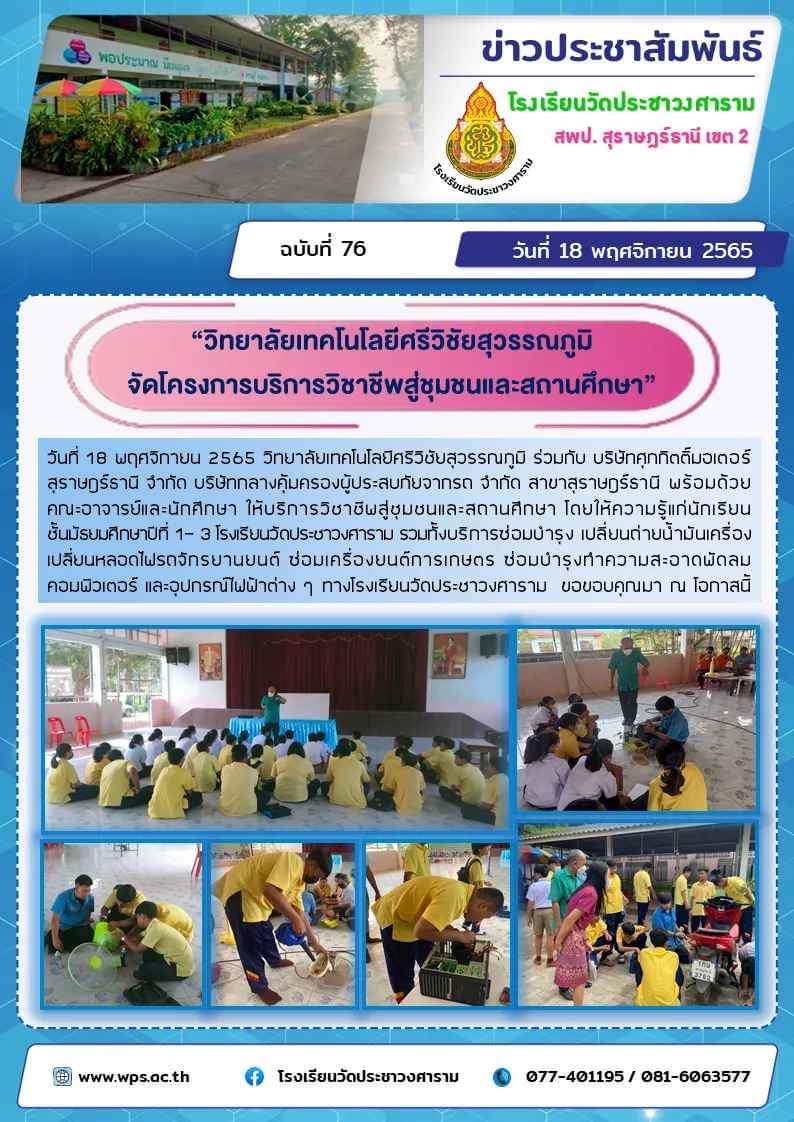 วิทยาลัยเทคโนโลยีศรีวิชัยสุวรรณภูมิ จัดโครงการบริการวิชาชีพสู่ชุมชนและสถานศึกษา