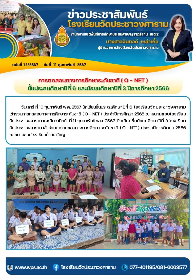 การทดสอบทางการศึกษาระดับชาติ O-NET ระดับชั้นประถมศึกษาปีที่ 6 และชั้นมัธยมศึกษาปีที่ 3