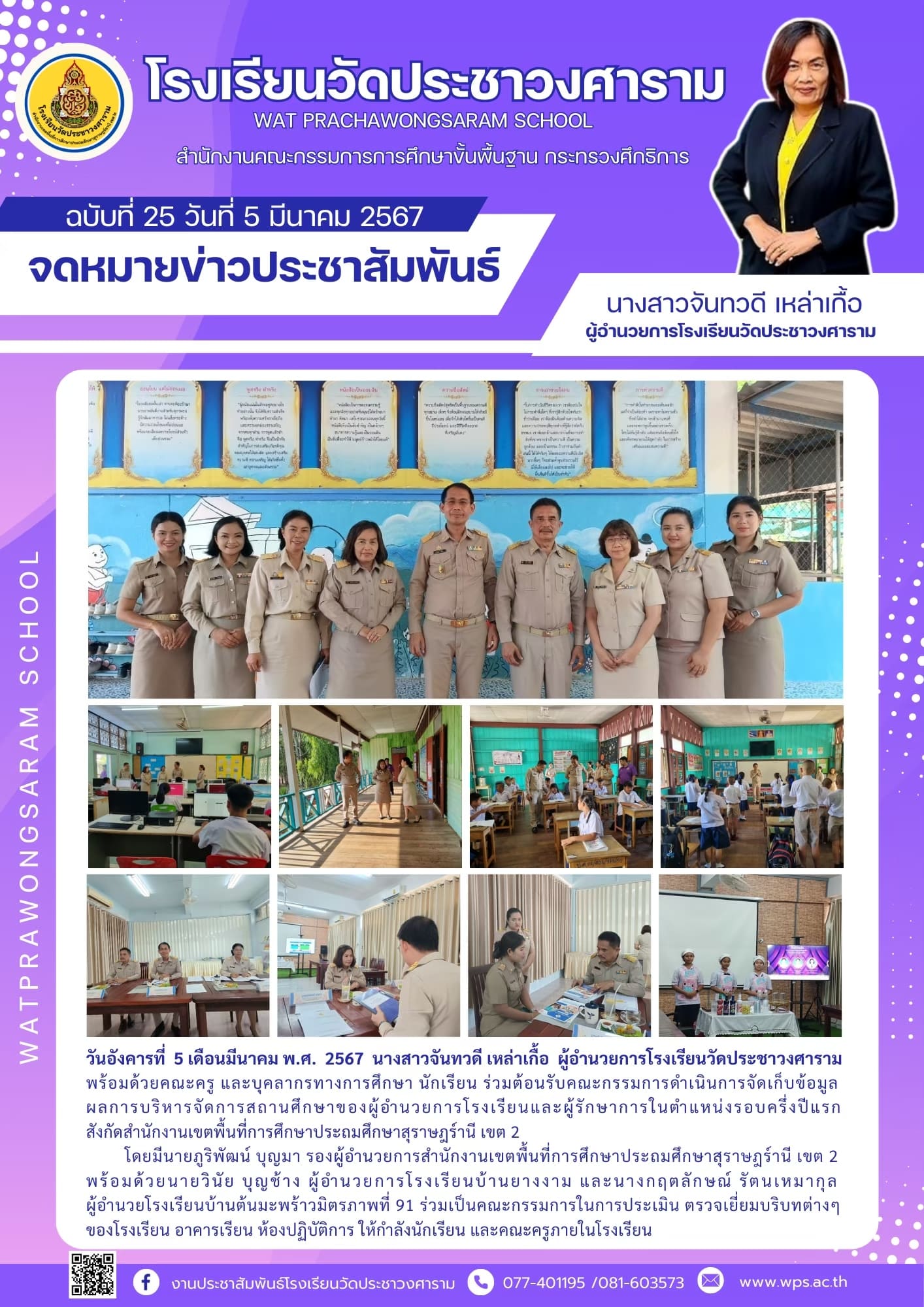 ร่วมต้อนรับคณะกรรมการดำเนินการจัดเก็บข้อมูลผลการบริหารจัดการสถานศึกษาของผู้อำนวยการโรงเรียนและผู้รักษาการในตำแหน่งรอบครึ่งปีแรก