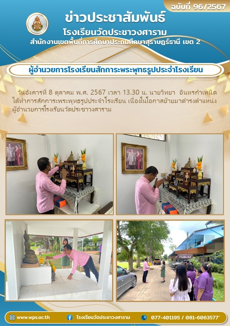 ผู้อำนวยการโรงเรียนนายวิทยา อินทรกำเหนิด เข้าสักการะพระพุทธรูปประจำโรงเรียน