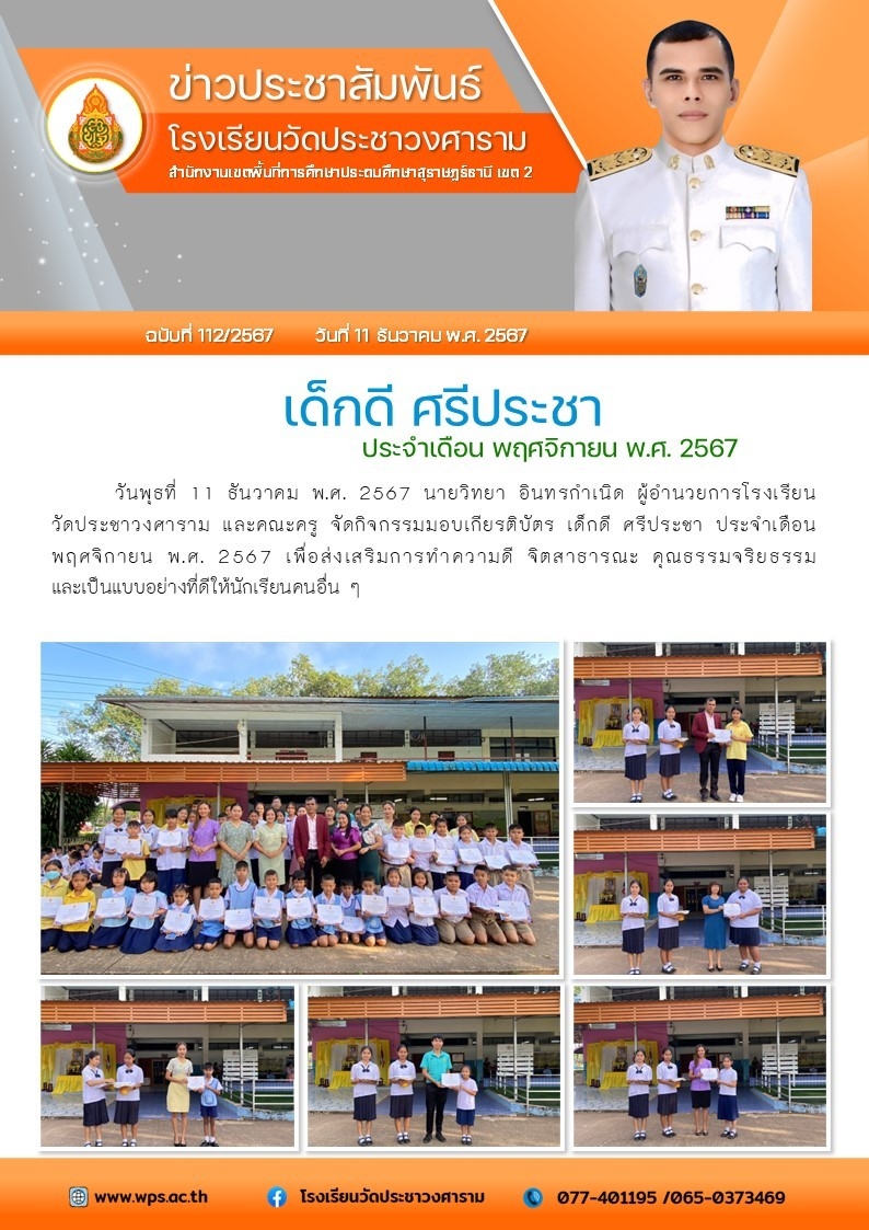 เด็กดีศรีประชาประจำเดือนพฤศจิกายน