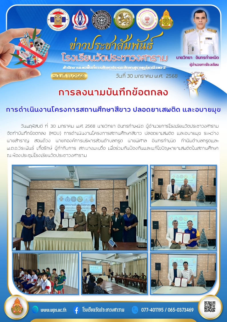 การลงนามบันทึกข้อตกลง การดำเนินงานโครงการสถานศึกษาสีขาว ปลอดยาเสพติด และอบายมุข
