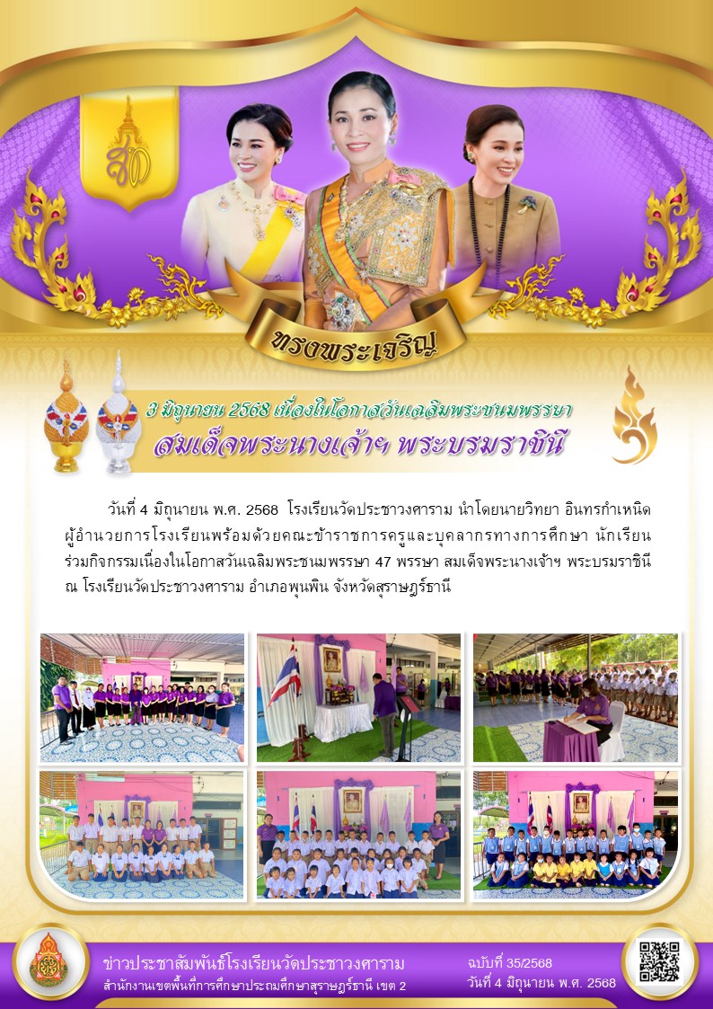 3 มิถุนายน 2568 เนื่องในโอกาสวันเฉลิมพระชนมพรรษา สมเด็จพระนางเจ้าฯ พระบรมราชินี
