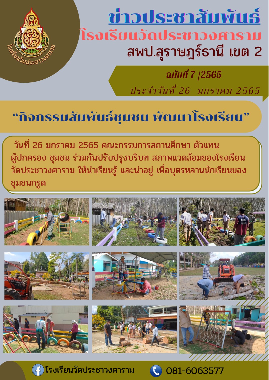 วันที่ 26 มกราคม 2565 คณะกรรมการสถานศึกษา ตัวแทนผู้ปกครอง ชุมชน ร่วมกันปรับปรุงบริบท สภาพแวดล้อมของโรงเรียนวัดประชาวงศาราม ให้น่าเรียนรู้ และน่าอยู่ เพื่อบุตรหลานนักเรียนของชุมชนกรูด