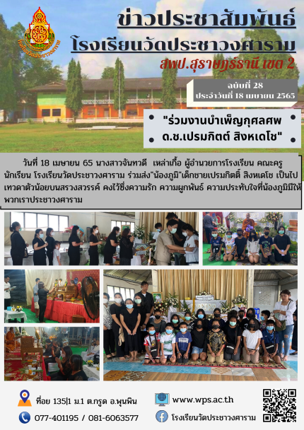 การร่วมงานบำเพ็ญกุศลศพ ด.ช.เปรมกิตต์ สิงหเดโช