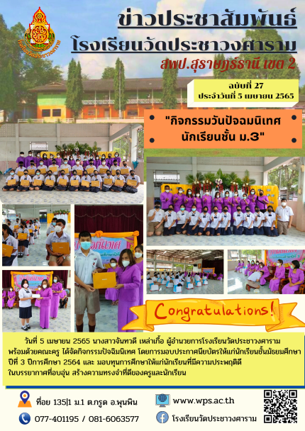 กิจกรรมปัจฉิมนิเทศนักเรียนชั้นมัธยมศึกษาปีที่ 3