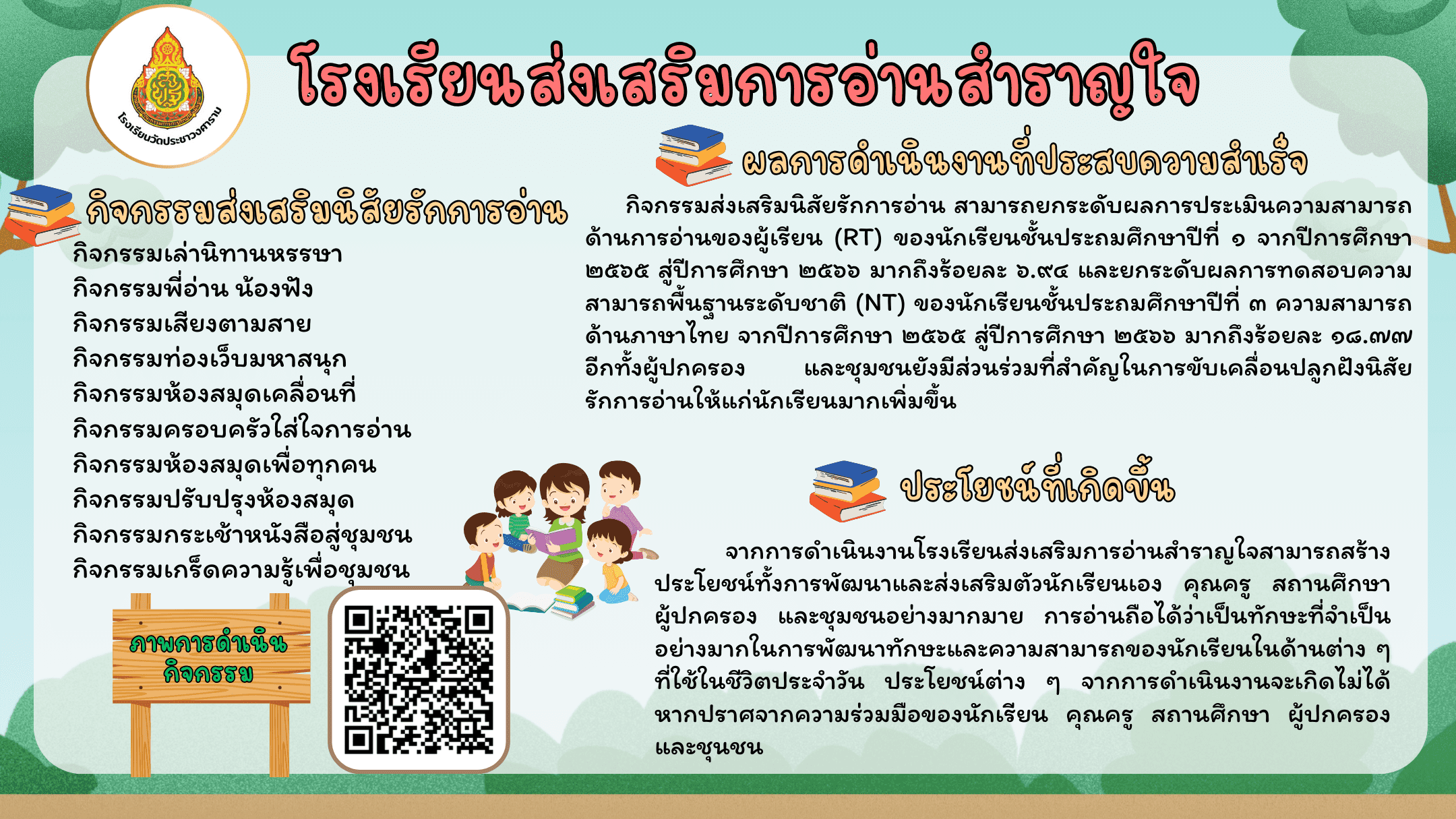 ผลการดำเนินงานโรงเรียนส่งเสริมการอ่านสำราญใจ